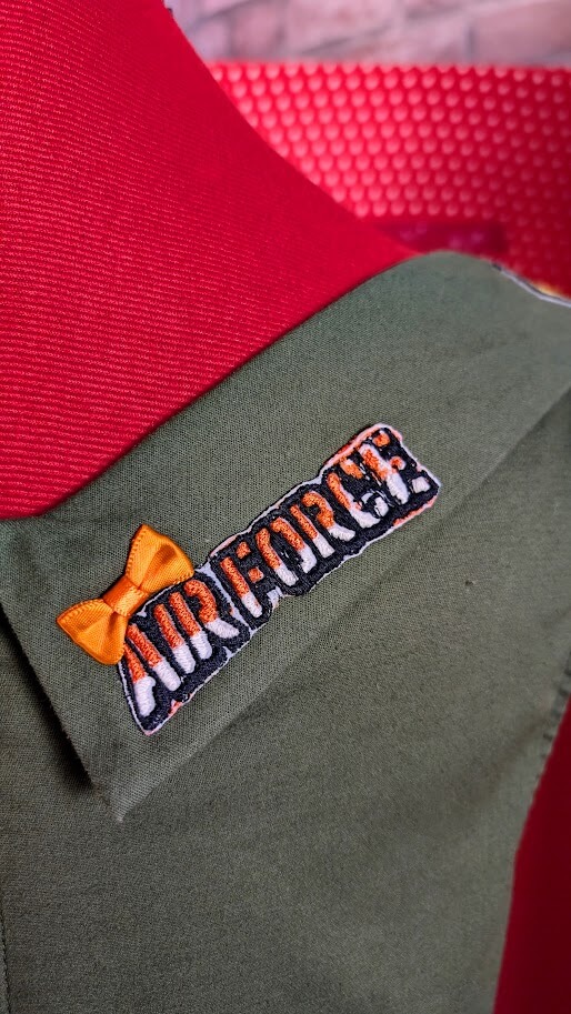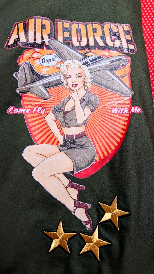 Elle arbore un visuel exclusif pour un hommage Air Force authentique sur une coupe évasée année 50 au caractère rockabilly affirmé.