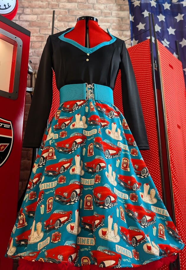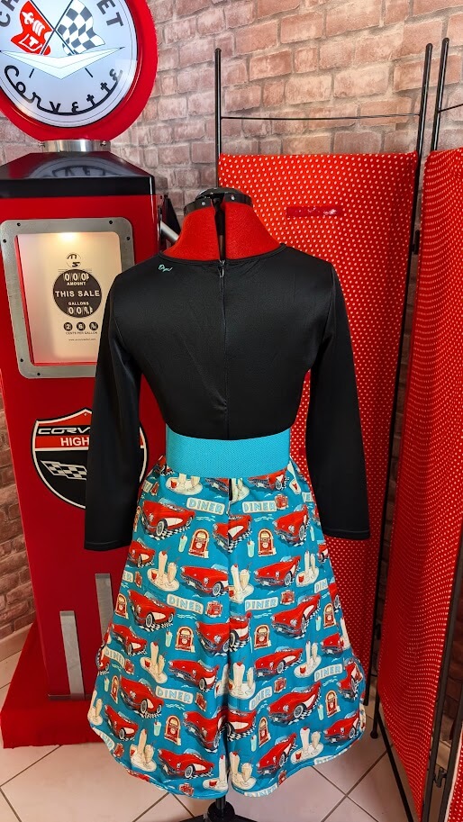 Création modèle unique ROBE PIN UP CADILLAC DINER ROCKABILLY
