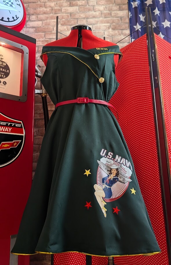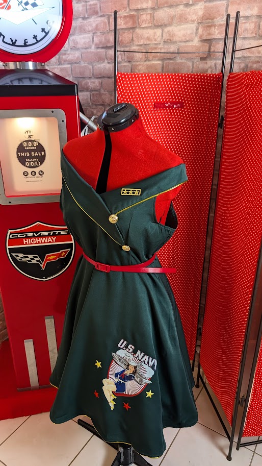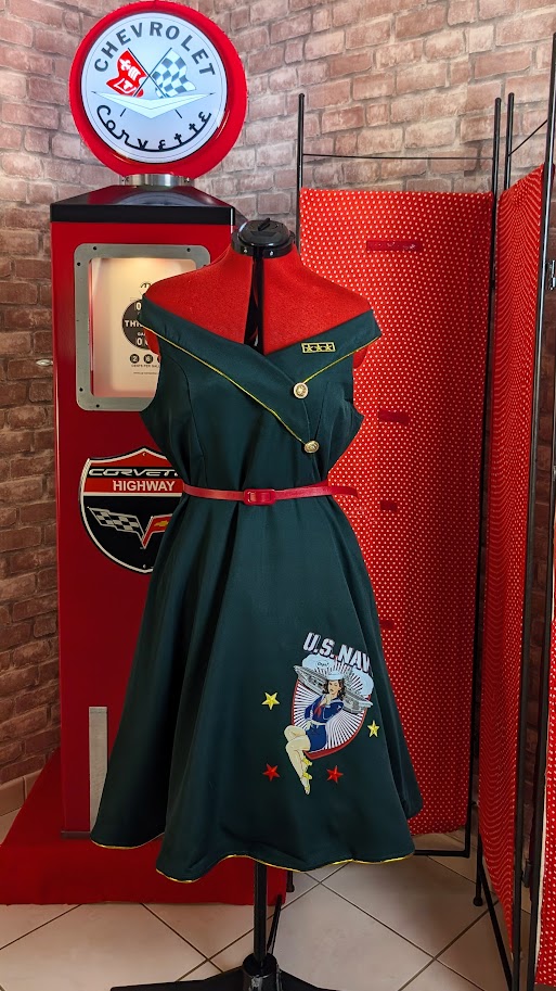 Création modèle unique ROBE PIN UP MILITARY SWING RETRO