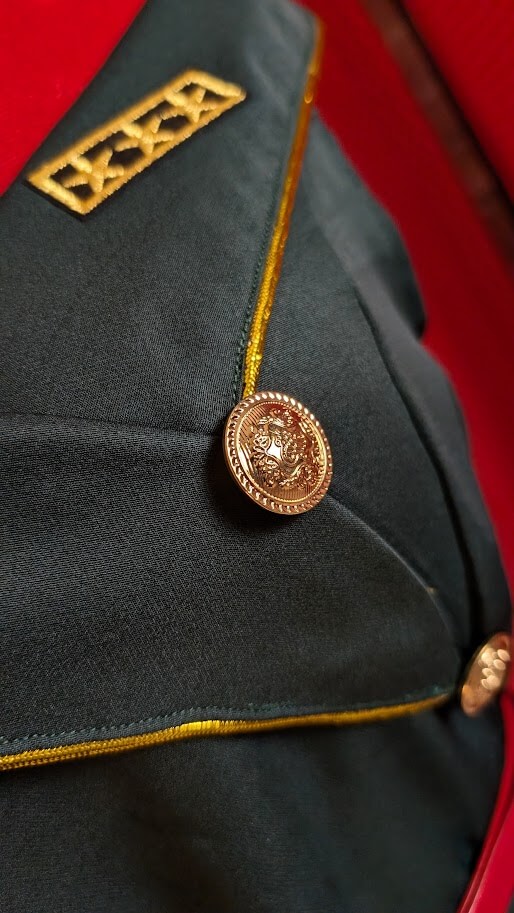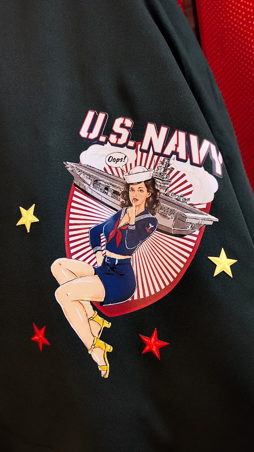 L’élégance de l’uniforme revisité au service d’une silhouette de pin-up.