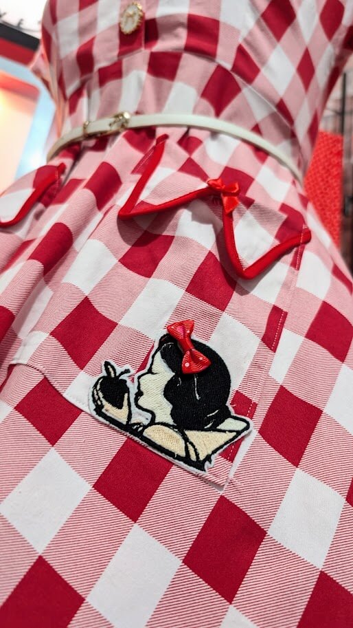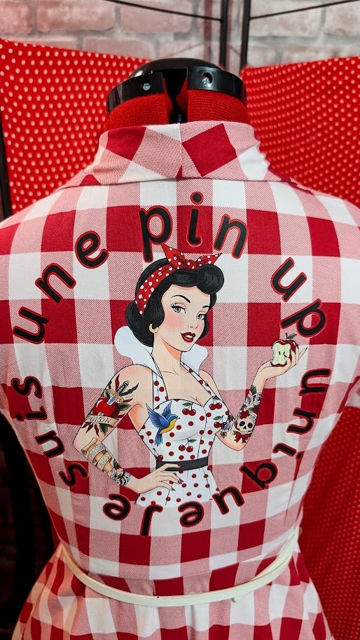 Réinventer le conte de fées, avec cette robe de style rétro Pin up unique qui brise les codes et met en lumière un motif audacieux dans le dos.